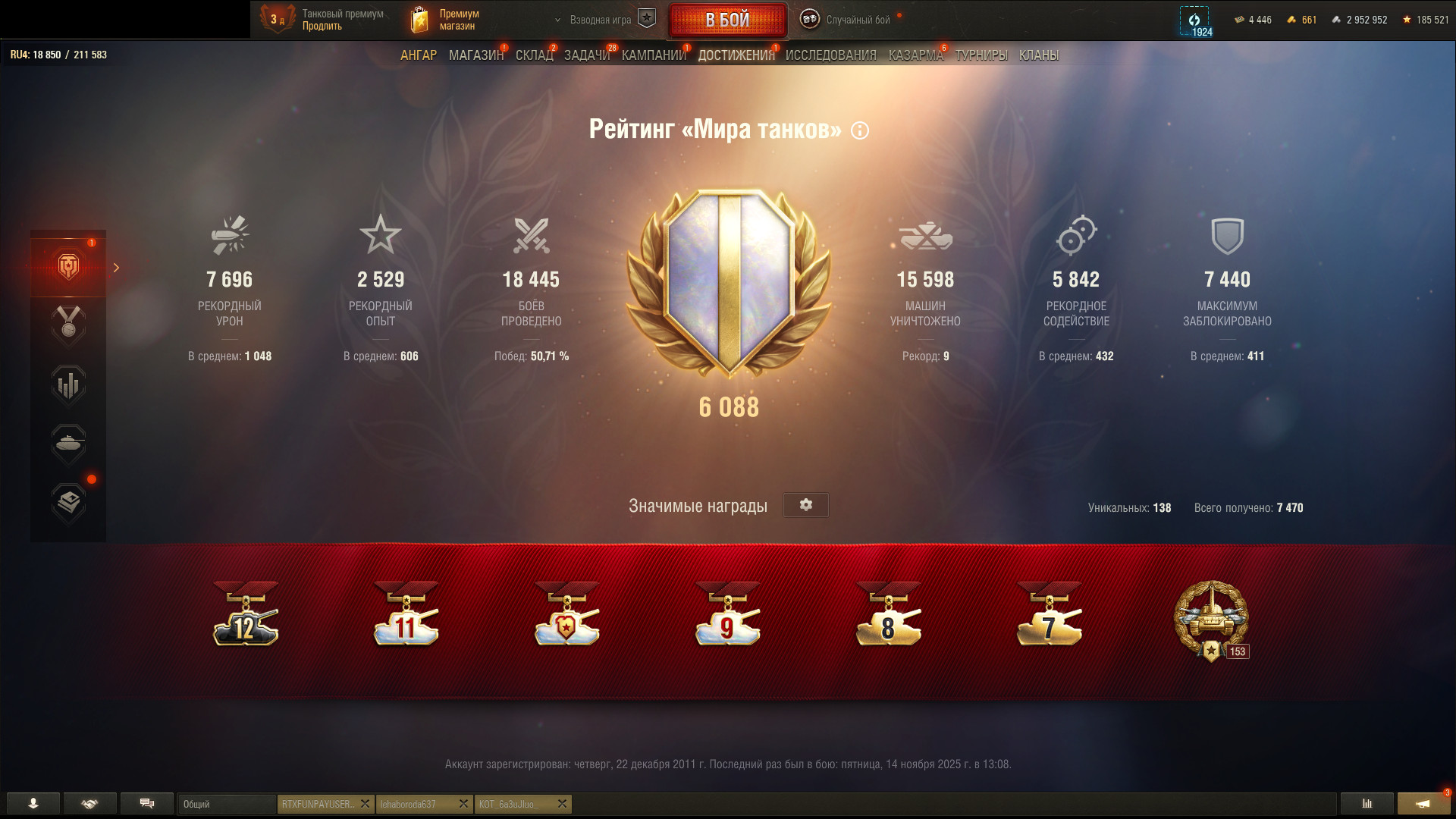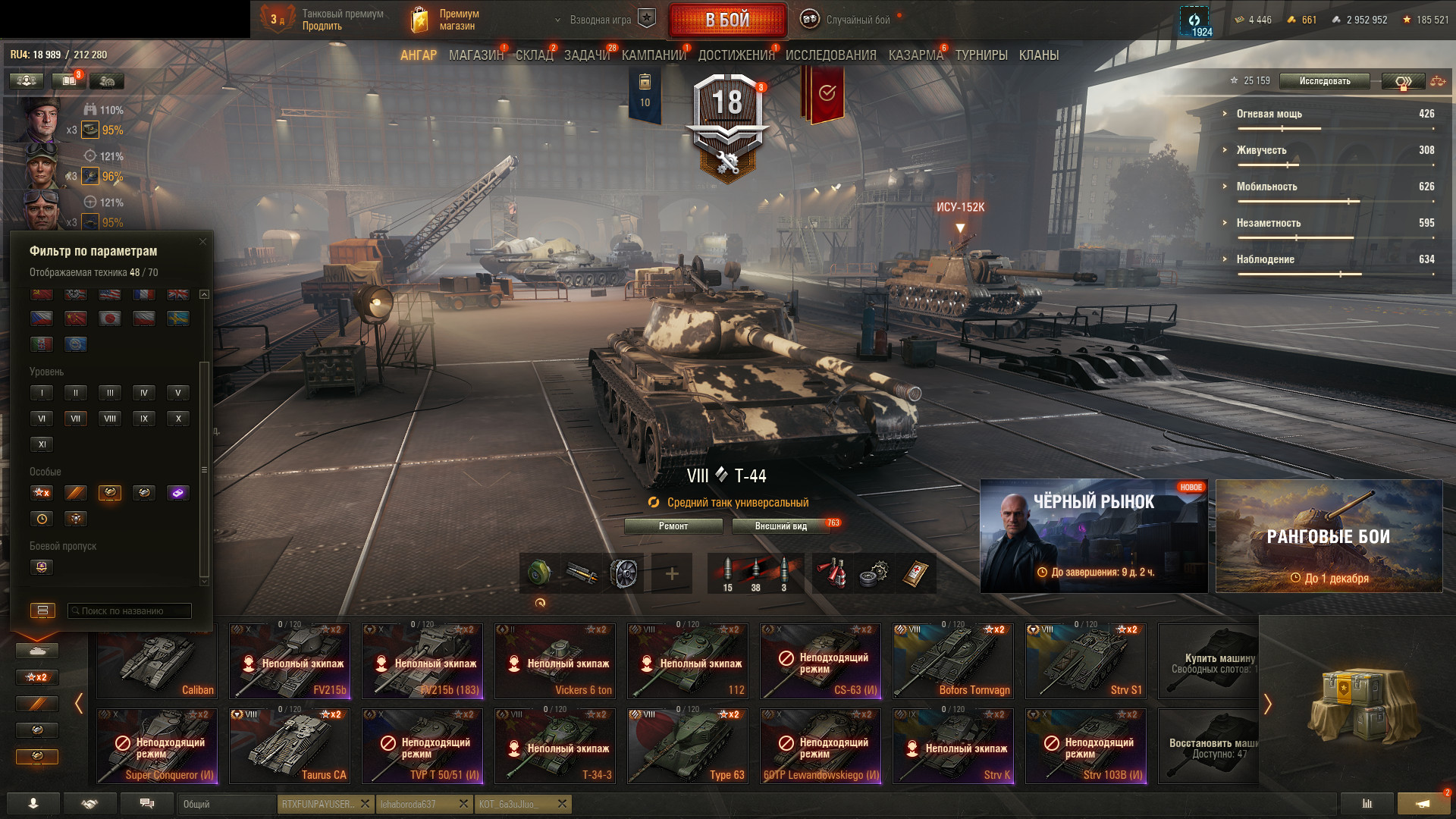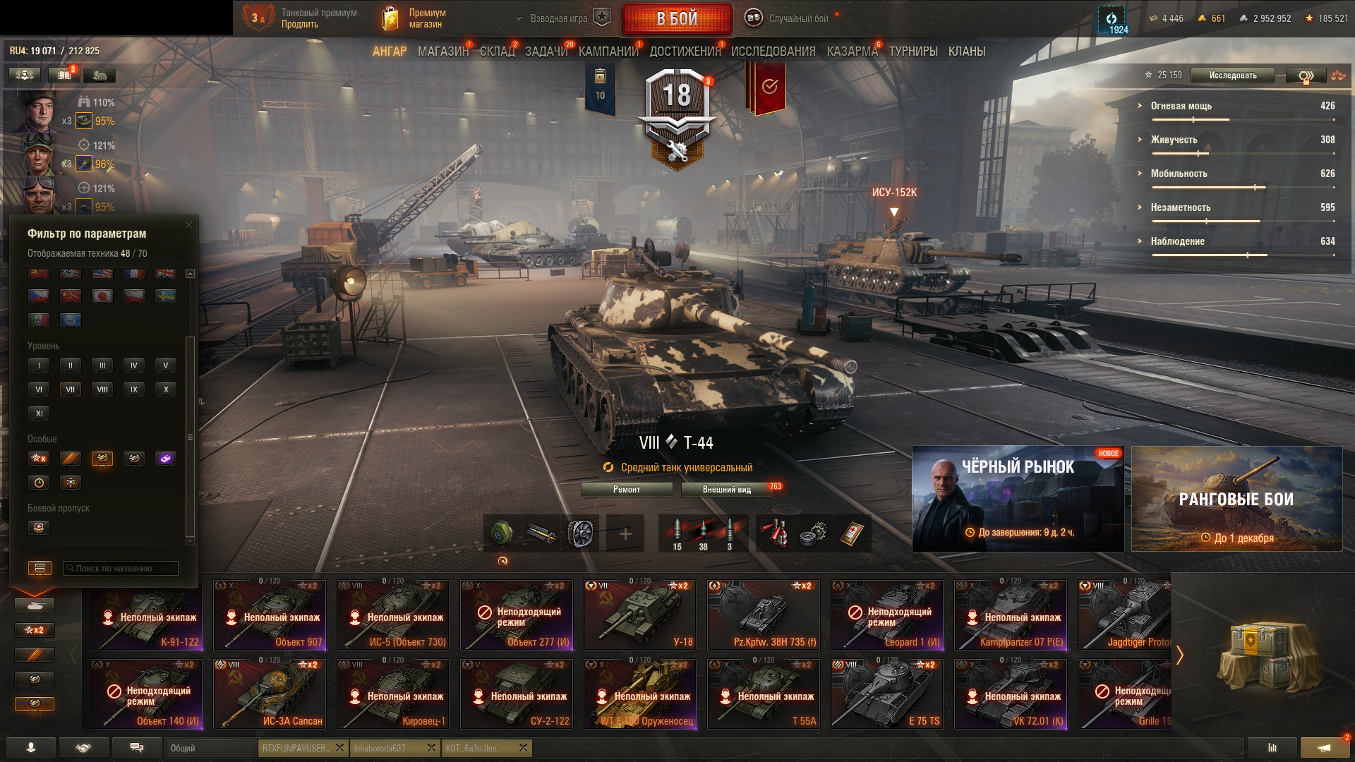 Аккаунт с гарантией Аккаунт 19 топов, Объект 907, 18 445 боев Войти через Войти через О товаре Количество топов 19 Премиум танков 33 Premium танка + Объект 907 Количество серебра 2 952 952 Количество голды 661 Количество боев 18 445 Доступ Игра + сайт Лэста Привязка Не проверялась