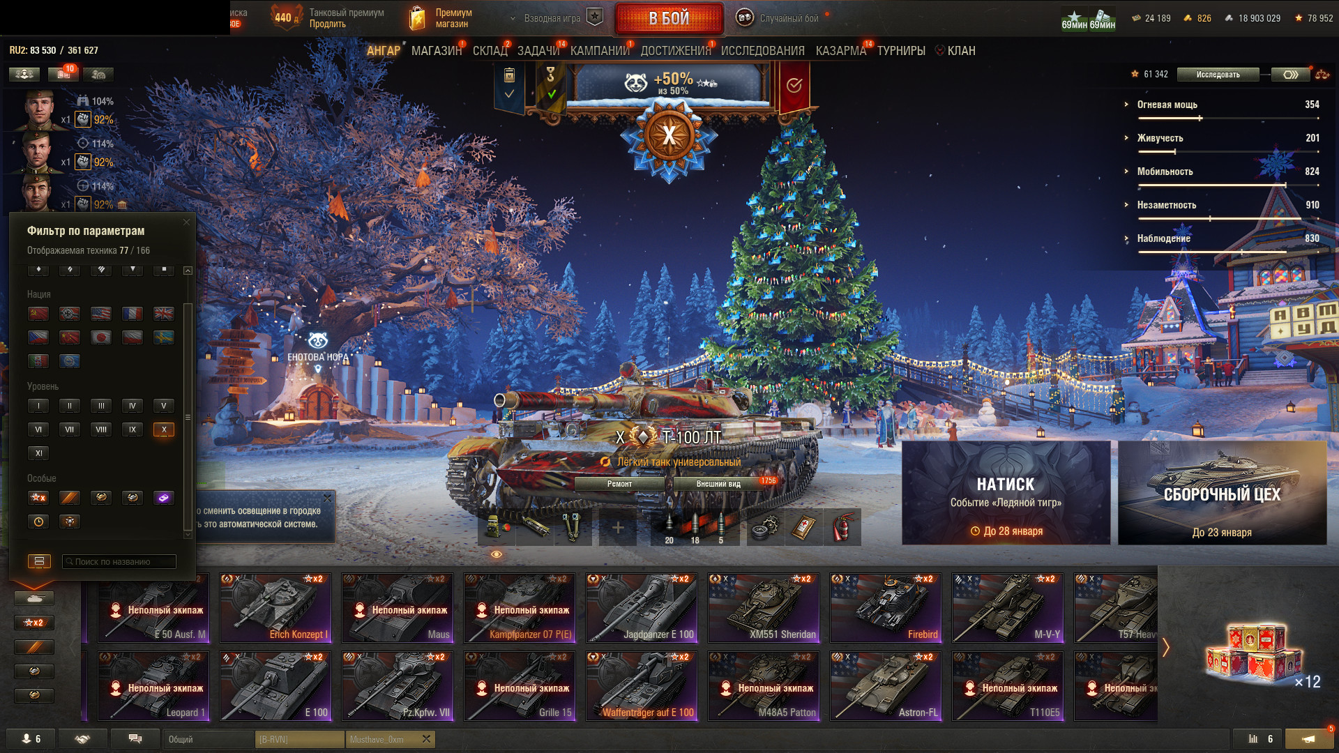 Аккаунт 77 топов, MBT-B (XI лвл), 120 AC «Gendarme», 29 718 боев, 57% побед