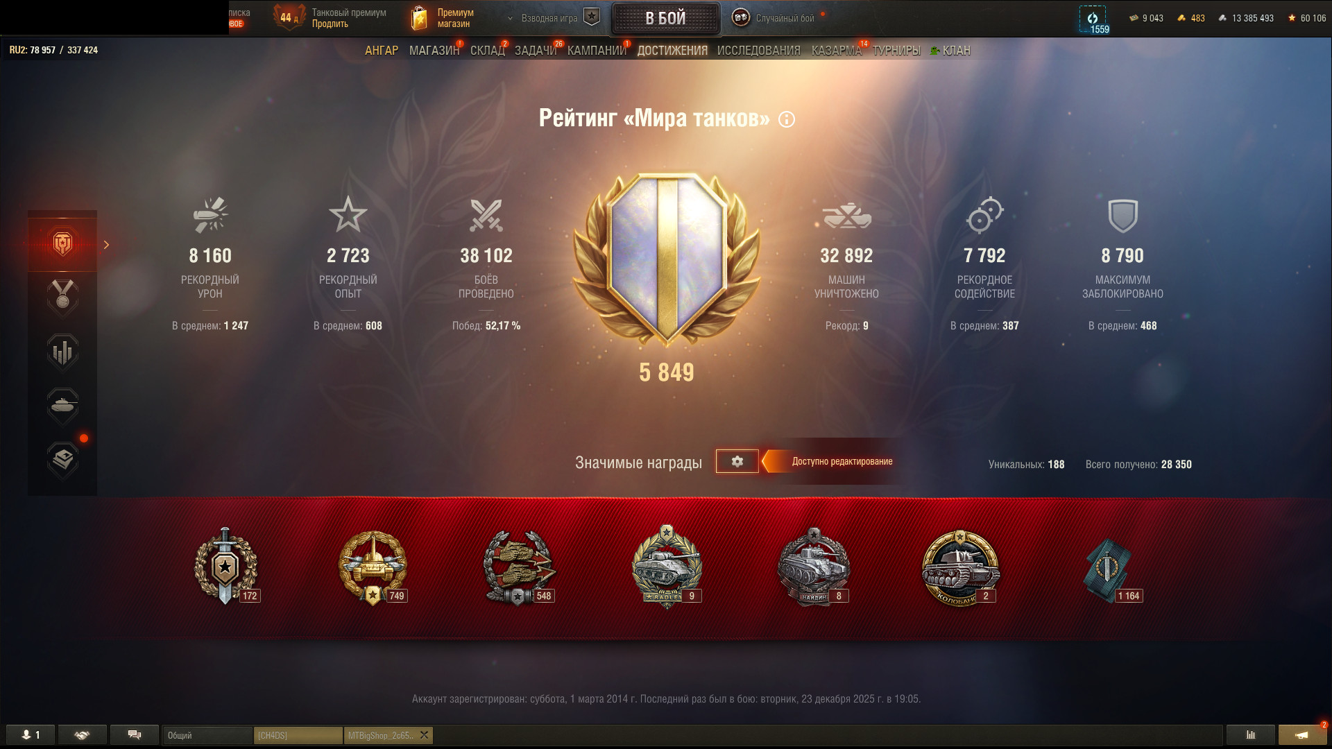 Аккаунт 53 топа, T95/FV4201 Chieftain, 38 102 боя, 52% побед