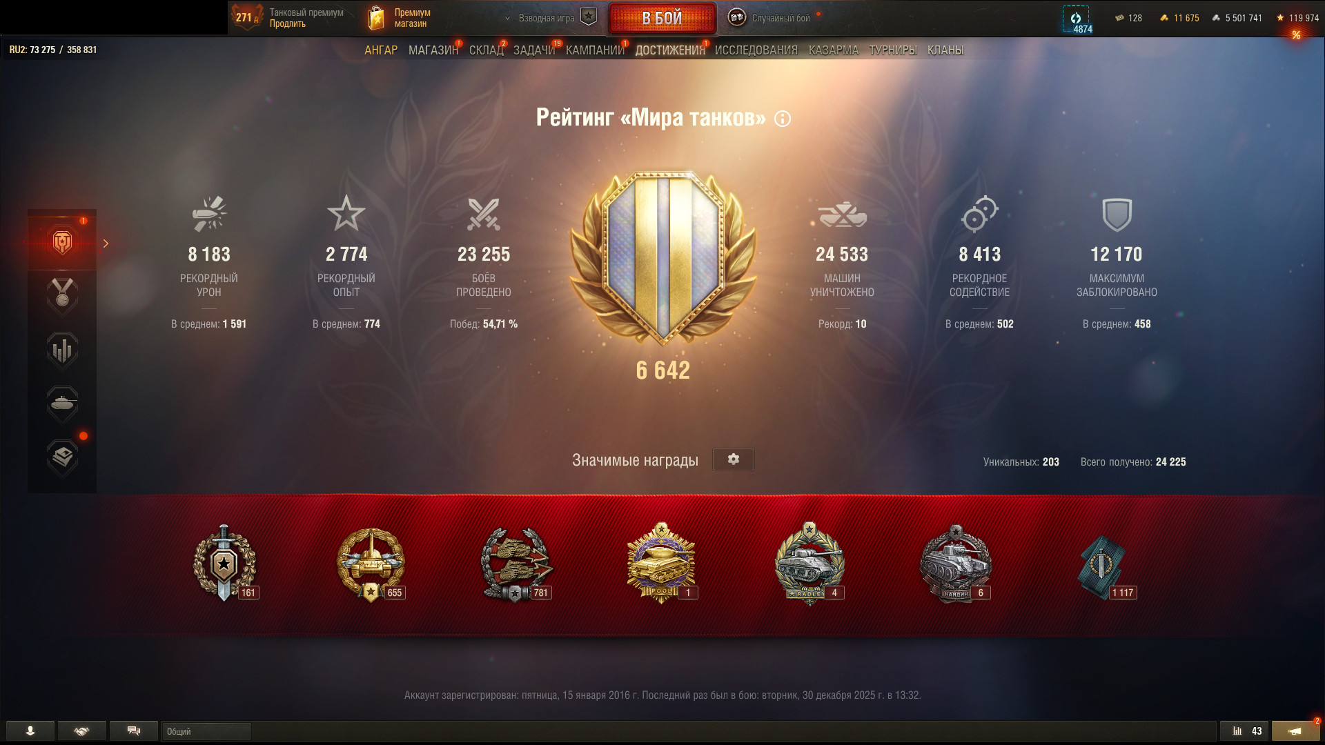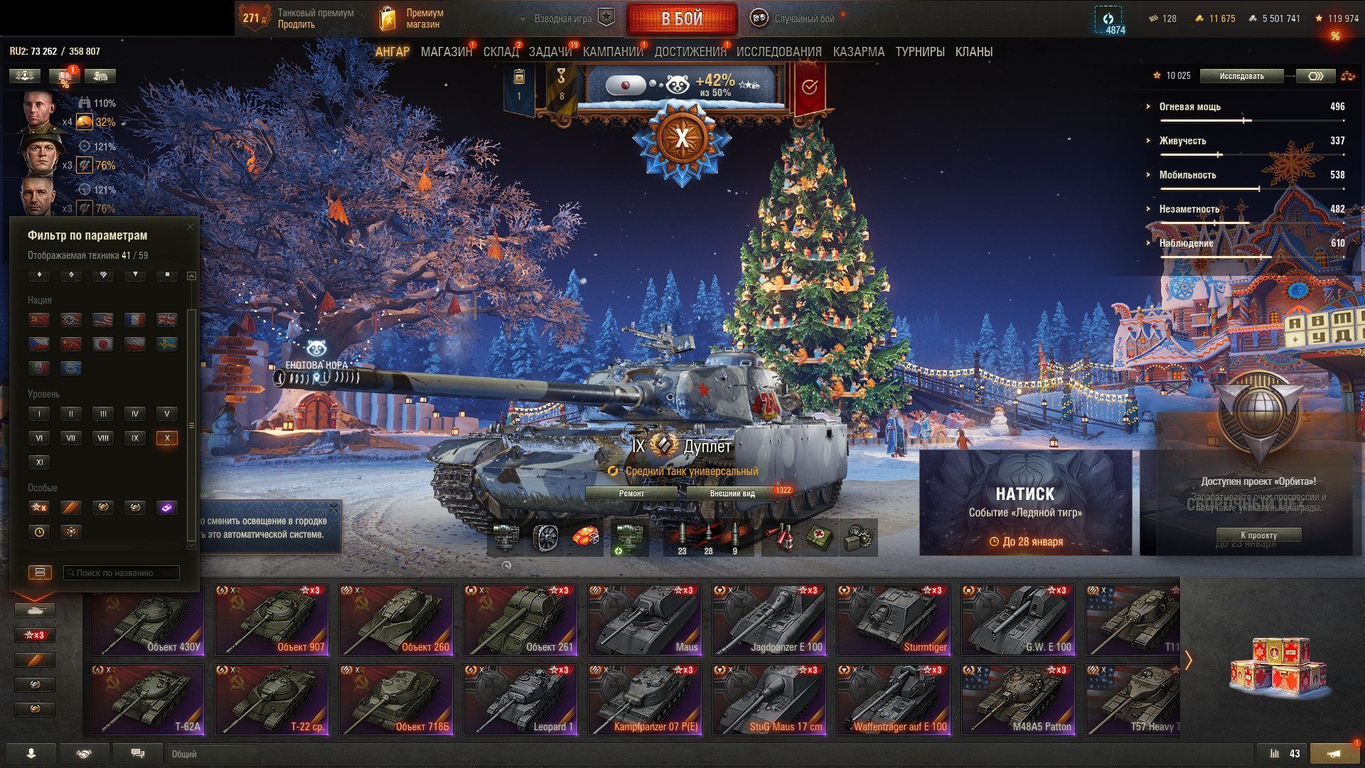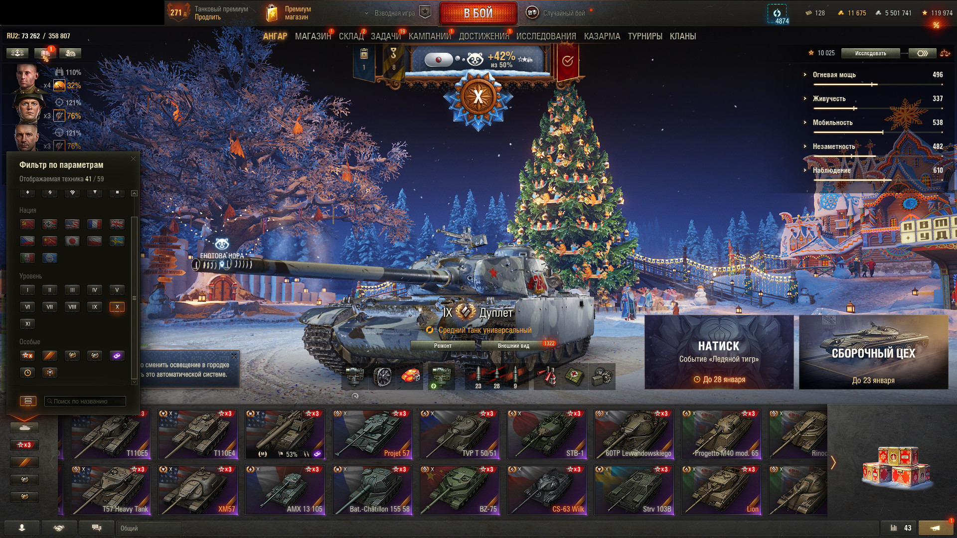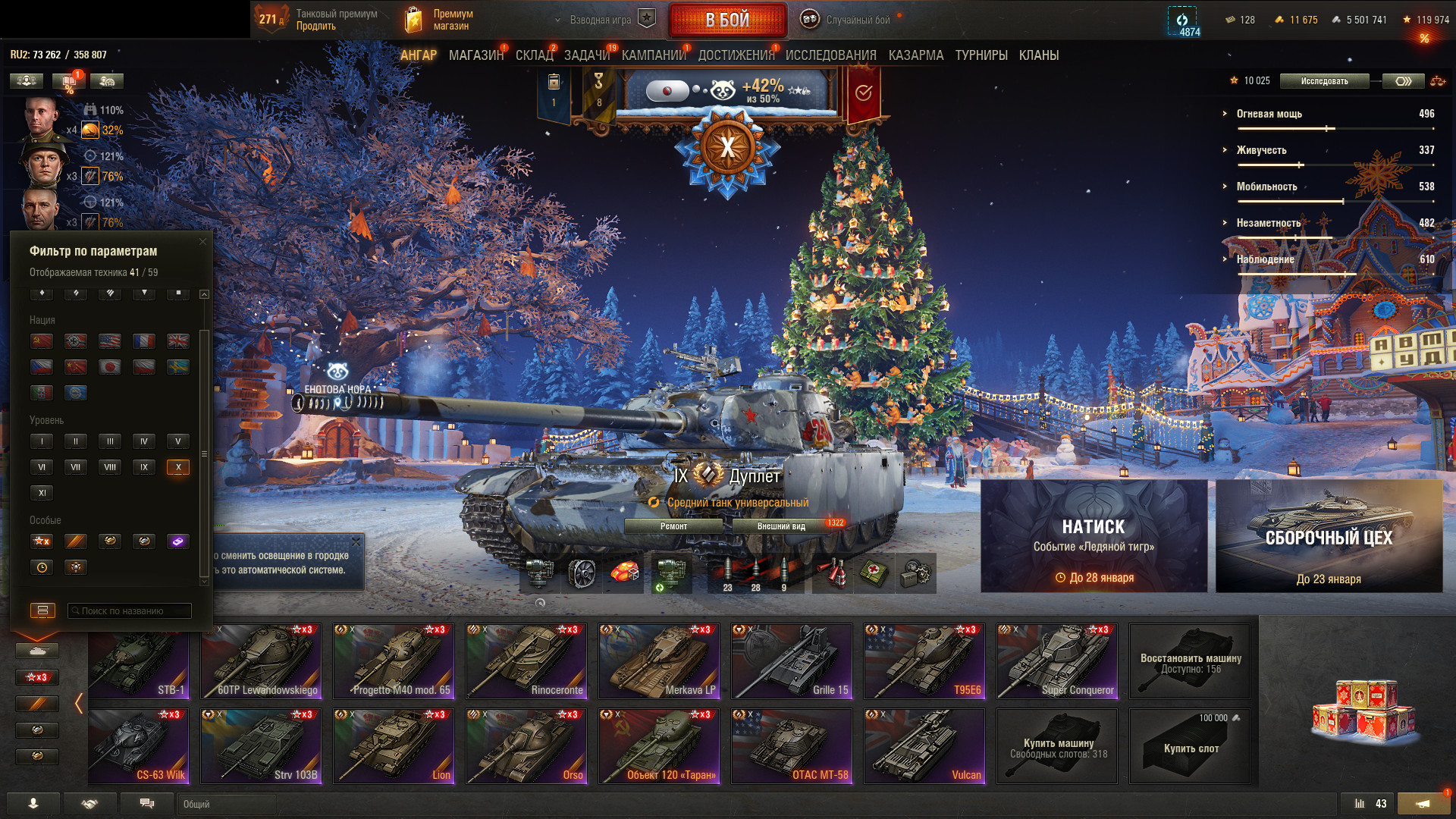 Аккаунт 41 топ, Объект 279 (XI), BZT-70 (XI), 23 255 боев, 54% побед